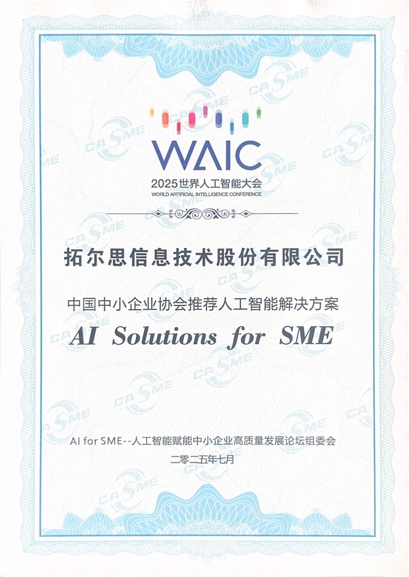 7月27日,2025世界人工智能大会“AI For SME——人工智能赋能中小企业高质量发展”论坛在上海召开,会上发布了Al Solutions for SME——中国中小企业人工智能推荐解决方案。拓尔思(300229)“基于AI Agent技术在金融消保智能审查领域的应用”凭借深厚的金融行业洞察和领先的AI技术成功入选。